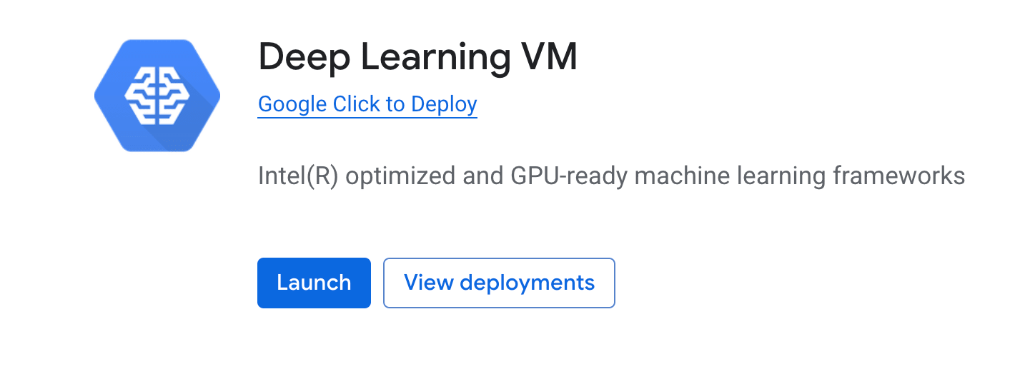 Once you are on the Marketplace Deep Learning VM listing page, click Launch. This will take you to the deployment configuration screen. This is where you define the power behind your model.