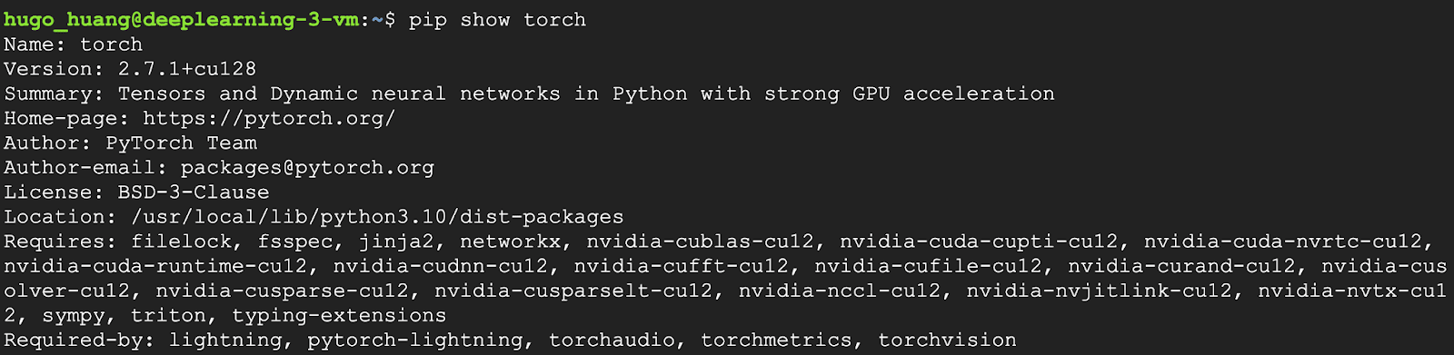 Google’s Deep Learning VMs usually come with PyTorch pre-configured. You can check the installed packages to ensure your favorite libraries are there: