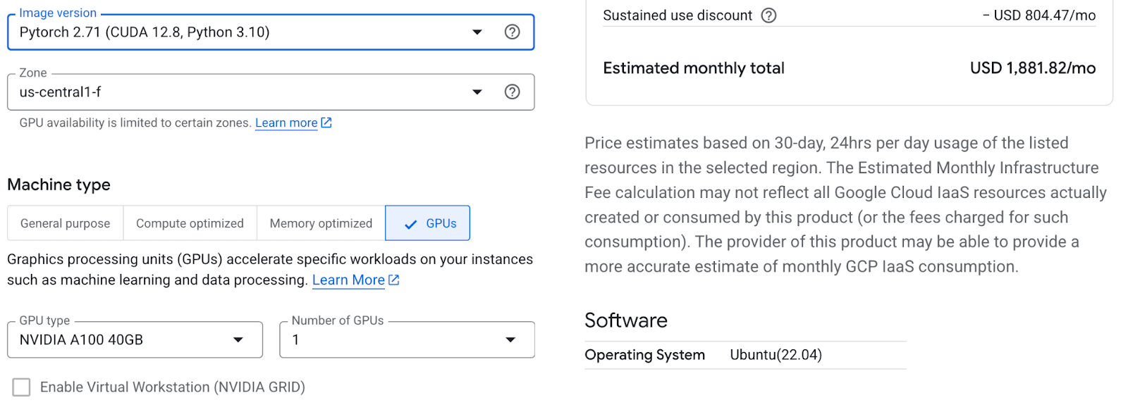 Google Cloud and Canonical work together to solve this with Deep Learning VM Images, which use Ubuntu Accelerator Optimized OS as the base OS. These are pre-configured virtual machines optimized for data science and machine learning tasks. They come pre-installed with popular frameworks, such as PyTorch, and the necessary NVIDIA drivers.